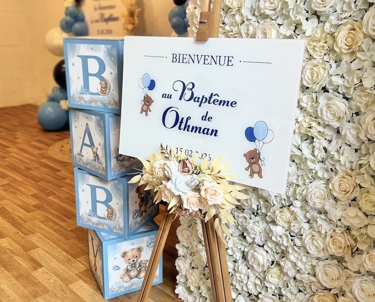 Je vous accompagne dans la création de décors uniques pour vos événements : baptême, anniversaire, baby shower, mariage…